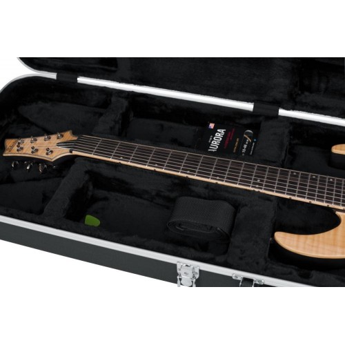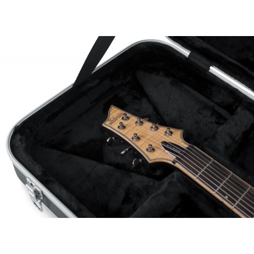 Ez a deluxe formázott tok kiváló védelmet nyújt elektromos gitárja számára. Az ütésálló ABS műanyagból készült kemény külső burkolat rendkívül tartós külsőt biztosít. A belső tér EPS habbal és plüss anyaggal van bélelve, hogy megvédje hangszerét a karcolásoktól és sérülésektől. Ezenkívül a tok tágas belső tároló rekesszel rendelkezik, amely biztonságos helyet biztosít a kapoderek, húrok, pengetők és egyéb kiegészítők számára. A megerősített, extra erős fogantyúk biztos fogást kínálnak, míg a nehéz alumínium keretek tartják a zárást egyvonalban, védik a külső széleket és növelik a tok általános szilárdságát. A krómozott zárható reteszek biztosítják, hogy hangszered mindig biztonságosan a helyén maradjon.