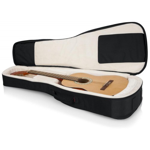 A Pro-Go sorozatú klasszikus gitár táska kiváló védelmet nyújt a klasszikus gitár számára. A rendkívül vastag párnázott oldalfalak és a luxus mikropolár belső biztosítják, hogy hangszered védve legyen az ütődésektől és karcolásoktól. Védő esővédő huzattal is rendelkezik, így ideális választás utazó zenészek számára, akik megbízható időjárásállóságot igényelnek. A többállású hátizsák pántok kényelmes hordozási lehetőséget biztosítanak, míg a Body Block belső ütéselnyelő plusz védelmet nyújt. További tárolóhelyek közé tartozik egy tablet zseb, belső kábelrendezés és egy kotta zseb.