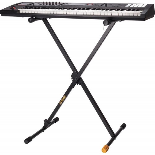 A HERCULES EZStep Billentyű Állvány KS100B összehajtható, összecsukható kialakítással rendelkezik, és a teljes méretű billentyűállvány tárolásához szükséges hely 88%-ában tárolható. Az állvány 6 különböző pozícióba állítható egy lábpedál kioldó segítségével.