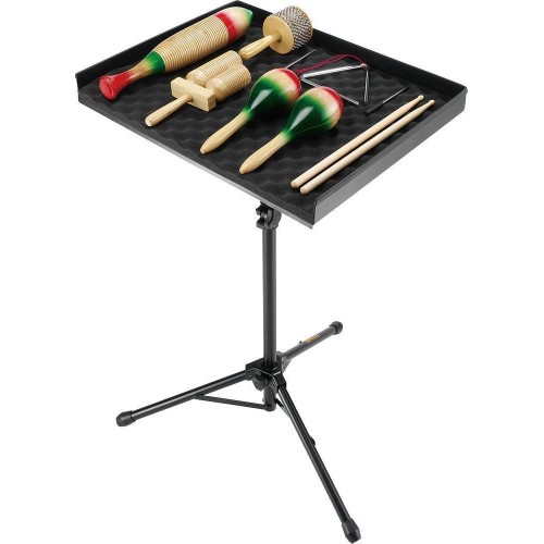 A HERCULES Percussion Table DS800B egy sokoldalú állvány, levehető hullámhabszivacs betéttel és gumiélekkel; ez az állvány biztonságosan tart különféle hangszereket.