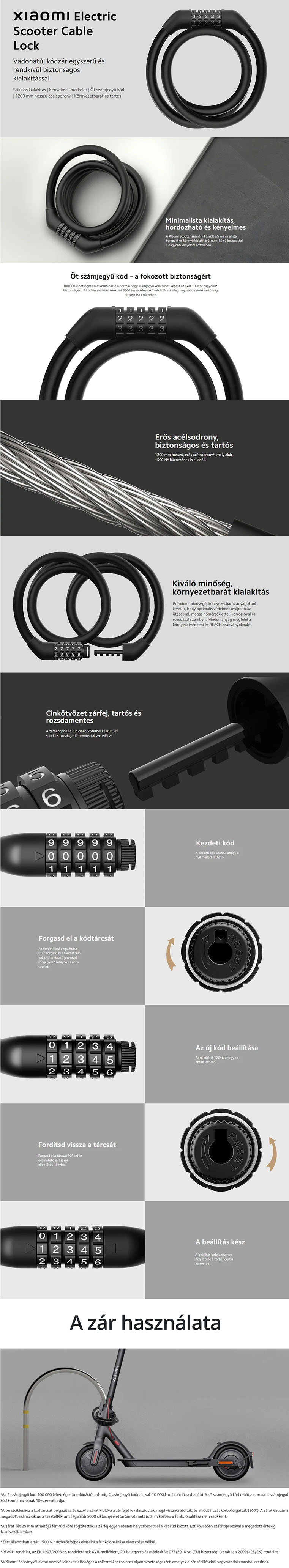 Xiaomi Electric Scooter Cable Lock zár / lakat elektromos rollerhez (BHR6751GL)