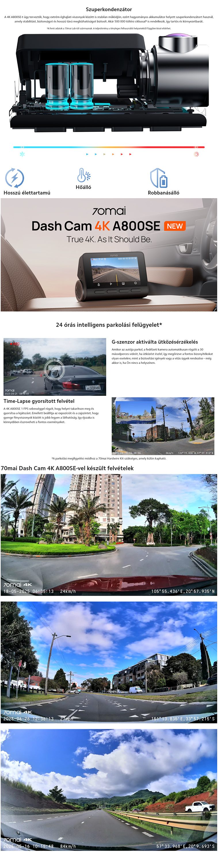 70mai Dash Cam 4K A800SE menetrögzítő kamera