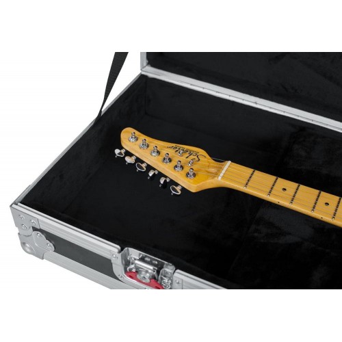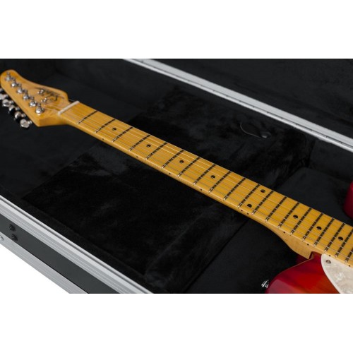 Az ATA fa szállítótok elektromos gitárokhoz a legmagasabb szintű védelmet nyújtja a hangszer szállítása során. Nehéz, rétegelt lemezből készült, laminált külsővel, amely biztosítja a tartósságot és hosszú élettartamot. Az erősített gömbsarkok és a kereskedelmi minőségű, nehéz hardver további biztonságot nyújtanak, míg a fekete plüss belső rész megvédi a gitárt a karcolásoktól és sérülésektől.