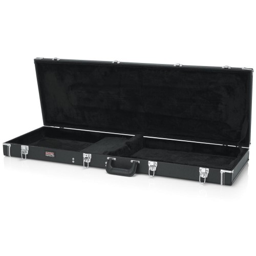 Védje basszusgitárját ezzel a deluxe fa tokkal, amely kivételes védelmet és kényelmet kínál. A masszív rétegelt lemez szerkezet biztosítja a tartósságot, míg a plüss bélésű habszivacs párnázott belső tér puha és biztonságos környezetet nyújt hangszerének. A beépített tároló rekesz rendezetten tartja tartozékait és könnyen hozzáférhetővé teszi azokat. A tok zárható, és ergonomikusan kialakított párnázott fogantyúval rendelkezik a kényelmes szállítás érdekében. A háromszoros krómozott hardver eleganciát és további védelmet biztosít.