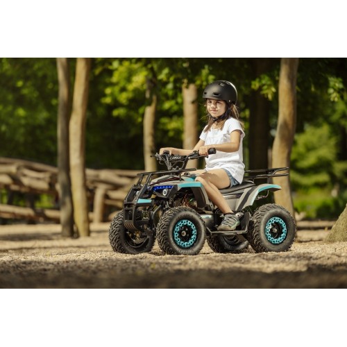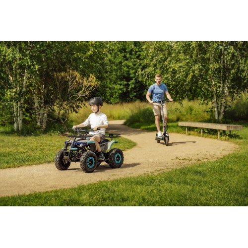Ez az elektromos quad még a természetjárás legelvetemültebb ellenzőjét is kicsalja a friss levegőre. Az akár 20 kilométeres hatótávolságnak, a 25 km/h végsebességnek, a kiváló stabilitásnak és az 1000 W-os teljesítménynek köszönhetően gyermeke élvezni fogja még a dombnak felfelé haladást is. Lefelé haladva megtartja az első és a hátsó tárcsafék. A csendes és környezetbarát elektromos motor még a legszigorúbb szomszédnőt sem zavarja, a stílusos LED-ekkel ellátott menő dizájn pedig megmutatja, ki az úr az utakon.