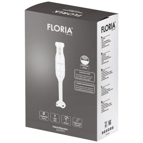 Floria turmixgép, ZLN7973, motorteljesítmény 250 W, két üzemi sebesség, rozsdamentes acél pengék, változtatható sebesség a habveréshez és keveréshez