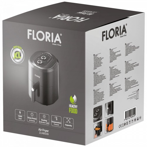 Az egészséges és ízletes ételek elkészítésére tervezett Floria Air Fryer teljesen automatikus programokkal biztosítja a chips, csirke, steak, garnélarák, hús, hal és sütemények optimális hőmérsékleten és időben történő sütését.