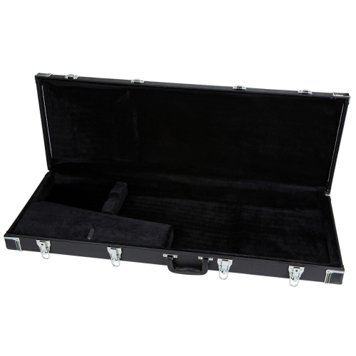 A RockCase Standard Line egy masszív keménytok, amely tökéletes a klasszikus elektromos gitár modellekhez. A fekete Tolex borítású tok optimális védelmet nyújt hangszerének. A nyaktámasz, a fedél közepén elhelyezett vastag habbetét és a habgumival megerősített belső élek a gitár védelmét szolgálják. A fekete bársony belső bélés további védelmet nyújt a gitár érzékeny felületének, míg a különálló belső rekesz fedéllel elegendő helyet biztosít a tartozékok tárolására. A masszív zárak, fém lábak és a robusztus műanyag fogantyú biztosítják a biztonságos és stresszmentes kezelést.