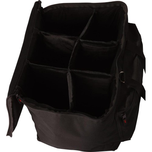 A GP-40 Par Can Lámpatartó Táska kiváló védelmet nyújt par can lámpái számára. Tartós nejlonból készült, amely 20 mm-es habszivacs béléssel és szintetikus szőrmével van ellátva, hogy megóvja felszerelését a sérülésektől. A belső térben állítható Velcro elválasztók találhatók, amelyek lehetővé teszik, hogy a helyet az igényeinek megfelelően alakítsa. A táska kényelmes web fogantyúkkal, vállpánttal és külső tárolózsebbel van felszerelve, hogy még kényelmesebbé tegye a használatát.