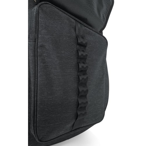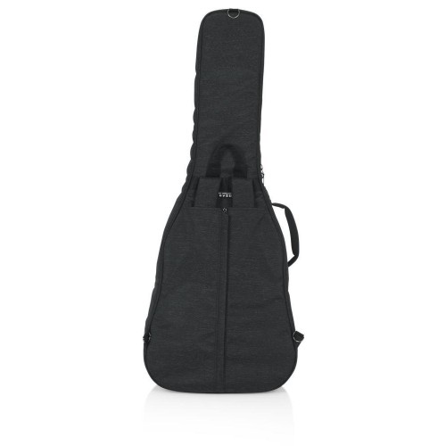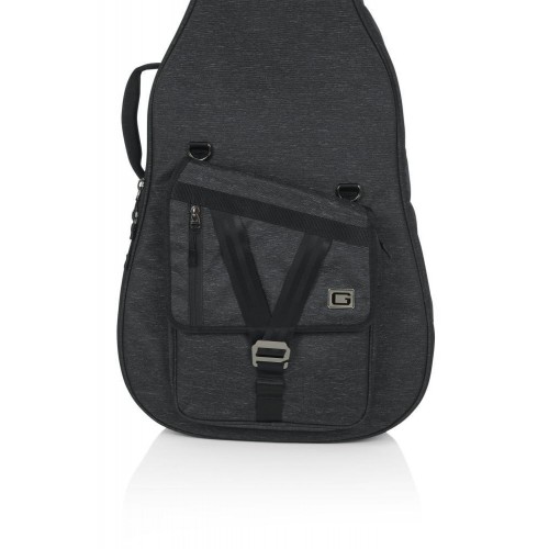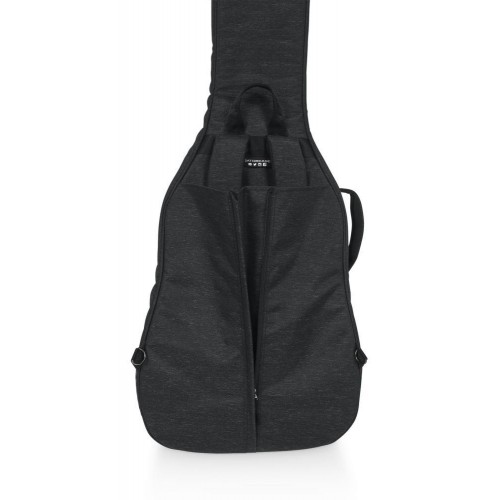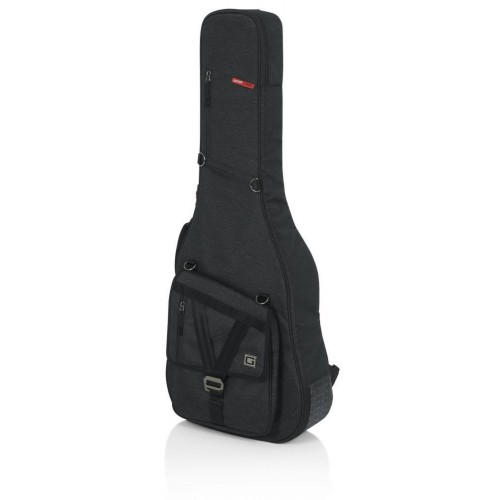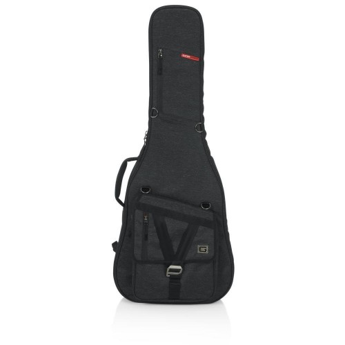A Gator Transit Series rezonátoros/00/klasszikus akusztikus gitár táska robusztus, tokhoz hasonló védelmet nyújt anélkül, hogy a táska könnyű hordozhatóságát feláldozná. A belső rész 20 mm vastag habszivacs párnázással és puha, vörös mikroszálas béléssel védi az akusztikus gitárt. Egy kivehető, hárompontos habszivacs párnázási rendszer tartja a hangszer fejét, nyakát és alapját a további védelem érdekében. Az időjárásálló, fekete szövet külső és a vastag gumitalp a táska alján megakadályozza a kopást és védi az elemekkel szemben. A megerősített fogantyú kényelmes fogást biztosít, míg a lehajtható hátizsák pántok könnyen lecsatolhatók és elrejthetők a hátsó cipzáras zsebben. A táska elején található külső zseb egy további kisebb cipzáras zsebet is tartalmaz, amely ideális tárolást biztosít személyes tárgyak és gitár kiegészítők számára. Továbbá több d-gyűrű is található a táskán, ami perifériás kiegészítők rögzítésére szolgál.