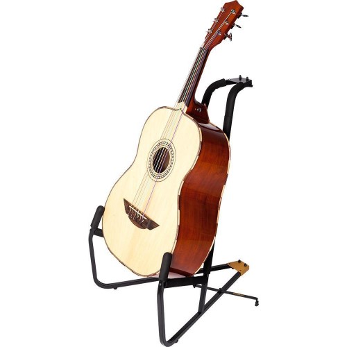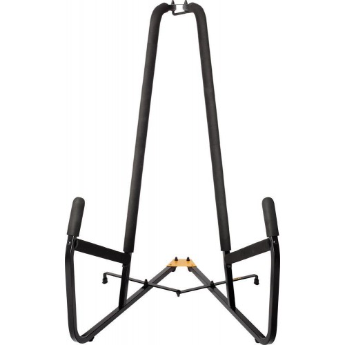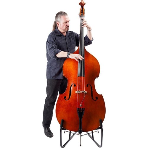 A HERCULES Double Bass Stand DS590B erős acél kivitelével és két zárócsapjával biztonságosan tartja a hangszert.