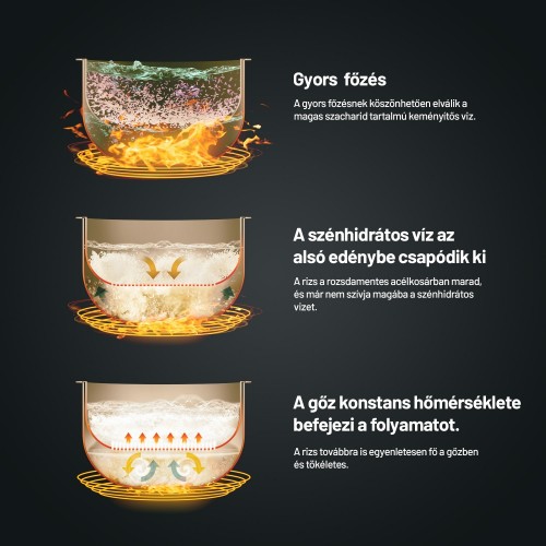 Az egészséges életmód kedvelői imádni fogják a low sugar funkciót, amely a speciális technológiának köszönhetően főzés közben elválasztja a rizsben lévő keményítőtől a felesleges cukrot. A leválasztott felesleges szénhidrátok kicsapódnak az alsó edényben, és a ciklus befejezésekor egyszerűen kiönti őket a vízzel. Tegyen egy lépést az egészségesebb táplálkozás felé a Lauben Low Sugar Rice Cooker 3000WT készülékkel, és fogyasszon csak tápanyagokban gazdag szénhidrátokat, megelőzve ezzel a jövőben a felesleges cukrok túlzott fogyasztása miatti esetleges egészségügyi problémákat.