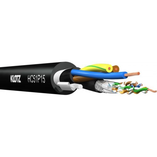 Ez a sokoldalú hibrid kábel (adat/táp) a modern számítógép-vezérlésű berendezések csatlakozókábeleként széleskörűen használható. Egy vagy két rugalmas CAT5e vezetékkel digitális hanghálózati komponenseket csatlakoztat a Dante™, CobraNet® vagy EtherSound® protokollokon keresztül, vagy DMX vezérlőjeleket továbbít az ArtNet®, MA Net vagy Pathport protokollok alapján. A kábel kényelmes megoldást jelent az informatikai szektorban a hálózati csatlakozást és áramforrást igénylő alkalmazásokhoz is. A CAT5 vezetékek kettős árnyékolásának (AL-fólia plusz sűrűn fonott rézárnyékolás) köszönhetően a nagy adatátviteli sebesség nagy távolságokra is zökkenőmentesen továbbítható, még nagy elektromágneses befolyással járó környezetben is. A tápkábel 1,5 mm² keresztmetszetű, és akár 60 méteres távolságon keresztül is biztosítja a tápellátást.