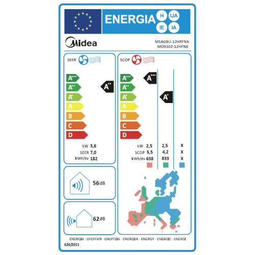 Midea Xtreme Save MG2X-12-SP oldalfali monosplit klíma 3.5 KW