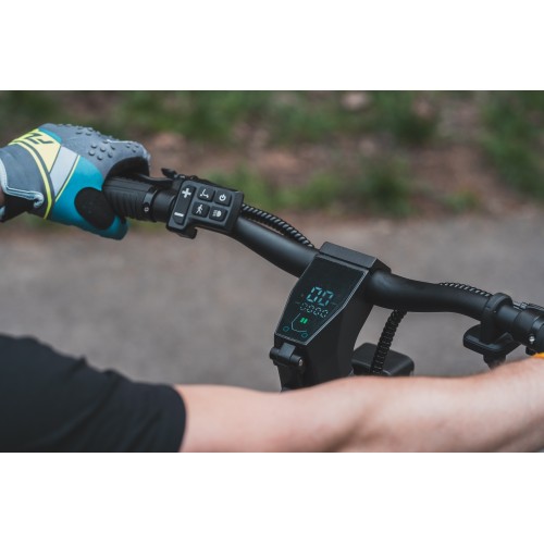 A nagyméretű kijelzőn világosan látható minden szükséges adat, a sebesség, a megtett távolság, az akkumulátor állapota, a kiválasztott üzemmód és a világítás állapota. Bármilyen időjárási körülmények között és éjszaka is jól leolvasható.