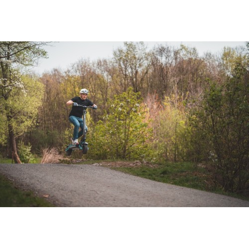 A 67 cm-re meghosszabbított és 124 cm-re megemelt kormány biztonságos és kényelmes fogást biztosít, csökkentve a görnyedés szükségességét, még nagyobb sebességnél és bukkanókon is.