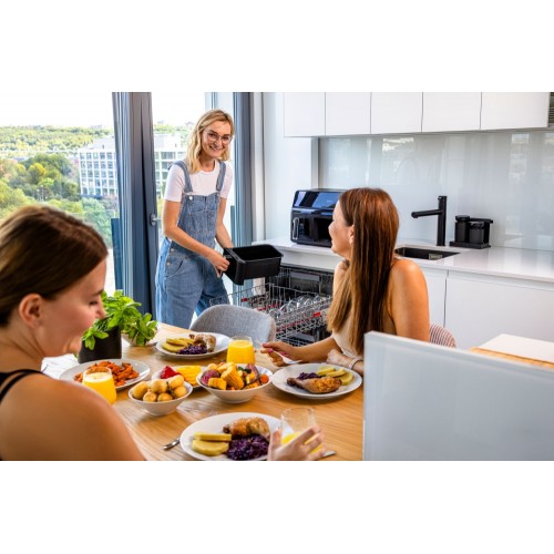 A Lauben Air Fryer kezelése intuitív, és bárki könnyedén megbirkózik vele. A jól áttekinthető kijelzőn beállíthatja a kívánt programot, ugyanitt a hőmérsékletet és a sütési időt is szabályozhatja. A fritőz átlátszó részének és a belső tér megvilágításnak köszönhetően könnyen ellenőrizhető vizuálisan az étel. Az étel készítése során beszennyeződő összes alkatrész mosogatógépben is elmosható. A maximális kihasználtság érdekében egyszerre használhatja mindkét belső kosarat. Egyet a főételhez és egyet a körethez. A precíziós DualZone® technológia minden alkalommal tökéletes eredményt biztosít. Optimalizálja ugyanis a két sütőkosarat, hogy a hőmérséklet és az idő pontosan megfeleljenek a beállított értékeknek. Addig is folytathatja más kedvenc tevékenységeit, a Lauben fritőz pedig gondoskodik a többiről.