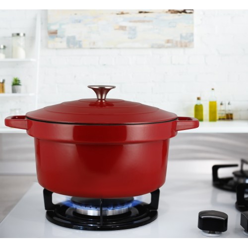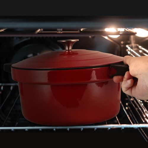 Az öntöttvas 6 literes zománcozott belső edény könnyen kivehető és a sütőbe vagy különböző típusú tűzhelyekre helyezhető. Akár 250°C-os hőmérsékletnek is ellenáll.