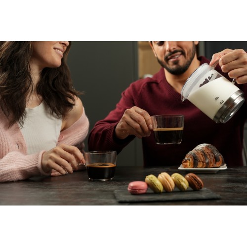 Az üvegtartály kényelmesen elmosható mosogatógépben. Ezzel időt takaríthat meg, hogy tovább élvezhesse a kávéját.