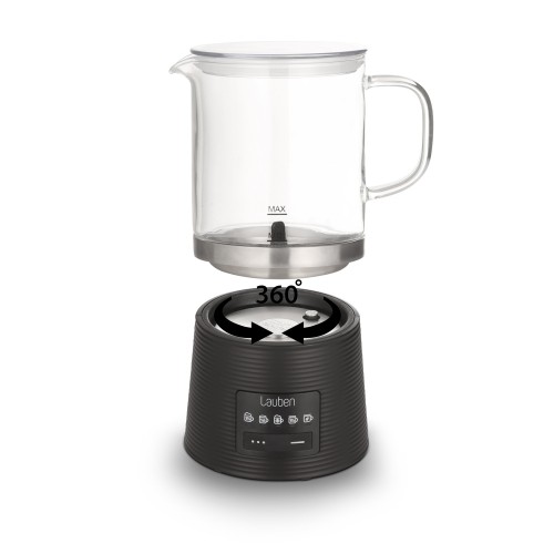 A Lauben Glass Milk Frother 600BG tejhabosító készüléknek köszönhetően a tökéletesen felvert tejet fogyasztók mostantól otthon vagy a munkahelyen is élvezhetik a barista féle tejhabot. Az üvegedény lehetővé teszi az elkészítési folyamat nyomon követését, egészséges és könnyen karbantartható, elég mindössze elmosni vagy betenni a mosogatógépbe. A kivehető keverő a karbantartást is megkönnyíti. A jobb kezelhetőség érdekében a talprész 360°-ban elforgatható. Az üzemmód opciók révén a készülék a hideg és meleg tejhabosítással, illetve a keveréssel is megbirkózik, a plusz speciális üzemmód pedig forró csokoládét készít. Barista képességeivel nem fogja zavarni az alvó családját vagy az irodai kollégáit sem, mivel a tejhabosító működése nagyon csendes. Ez a praktikus formatervezett készülék 250 ml tejet melegít és 150 ml tejet habosít fel. A csúszásmentes lábak a helyén tartják a készüléket, és az automatikus kikapcsolási funkció is hozzájárul a biztonsághoz.