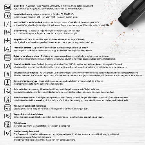 Lauben Hand Vacuum 2in1 120BC – Egy nagy teljesítményű és flexibilis segítőtárs, amely minden sarkot kiporszívózik