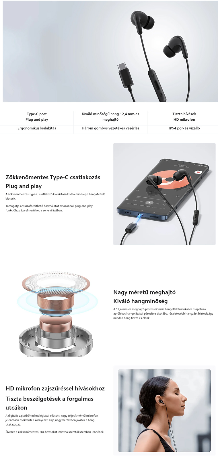 Xiaomi Type-C Earphones vezetékes fülhallgató - Black (BHR8930GL)