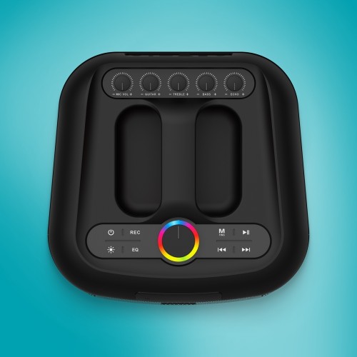 A hangszóró csatlakoztatása a különböző eszközökhöz a modern Bluetooth 5.3 segítségével gyerekjáték, a párosítás pedig automatikus. A megfelelő bulit csak fokozza a kifinomult kompakt kialakítás, akár 8 állítható LED-effektussal. Minden egyszerűen és intuitívan kezelhető, semmi bonyolult, hagyja, hogy élvezze a tiszta és kiegyensúlyozott hangzást.