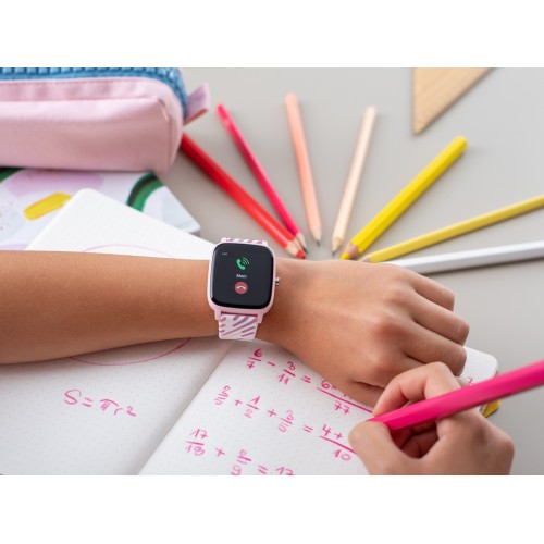 Az óra figyelmezteti a gyermeket egy bejövő hívásra, SMS-re, a TikTok és más alkalmazások híreire. Egyszerűen rezeg, és a kijelzőn tudatja, hogy miről van szó. Jól megérti magát az Androiddal és az iOS-szal is. A telefon így tanítás közben nyugodtan a táskában maradhat.