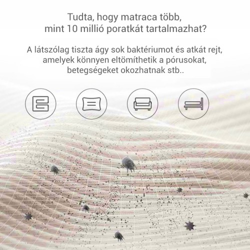 Tudtad, hogy a matracod akár 10 millió atkát tartalmazhat? A látszólag tiszta ágyakat vagy az aranyos baba plüss játékokat is sok baktérium és atka borítja, amelyek allergiás reakciót okozhatnak vagy más egészségügyi problémákat okozhatnak. A TESLA LifeStar UV550 porszívóval eltávolítja az atkák táplálékforrását, amelyek elhalt hámsejtek, és így csökkentik azok mennyiségét.