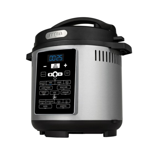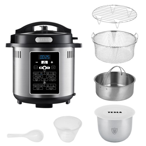 Többfunkciós elektromos gyorsfőző TESLA EliteCook K80 Deluxe gyorsfőző, forró levegős sütő, lassúfőző, Sous vide, rizsfőző, joghurtfőző, gőzfőző, serpenyő vagy grill, tojásfőző, ételmelegítő, ételszárító, sterilizáló. A főételt és a köretet is egyszerre készítik el.