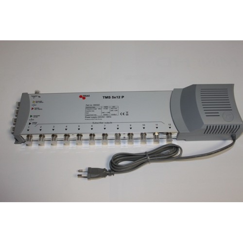 A TMS 5x12 kapcsoló 5 bemenettel rendelkezik, melyből 4 a Quattro LNB csatlakozásához szükséges, illetve az ötödik bemenetre ráköthető egy földi antenna vagy a kábeltévé szolgáltató által biztosított jel. A 12 kimenet mindegyikén megjelenik mind a Sat-os, mind a földi vagy kábeltévé jel, ezek egymástól függetlenül használhatóak. A kimenettől a végpontig egyetlen koax kábelre van szükség (már amennyiben nem 2 tuneres a vevőegység, ekkor 2 kábel szükséges) és ez egy szűrővel ellátott fali aljzatban végződik, itt választódik külön a Sat-os és a földi jel.