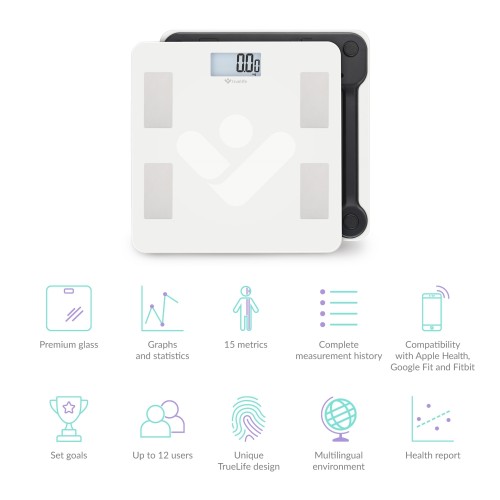 A TrueLife személyi mérleg a profi sportolók által is használt bioelektromos impedancia-elemzés (BIA) elvén működik. A TrueLife FitScale W4 BT mérleg segítségével otthonában, kényelmes körülmények között tökéletesen értelmezheti teste összetételét. A súly összesen 15 indexet mér, beleértve a BMI-t, a szubkután zsírt, az anyagcsere életkort, valamint az izom- vagy csontváz tömeget. Az összes érték alakulása nyomon követhető a mobilalkalmazásban, amellyel Bluetooth-on keresztül párosíthatja össze a mérleget.