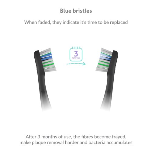 A fejek legfeljebb 3 hónapos használatra alkalmasak, ezt követően a sörtéik meggyengülnek és elhajolnak, veszítenek hatékonyságukból és baktériumok halmozódnak fel közöttük. Szerencsére a fejek kék sörtékkel vannak ellátva, amelyek 3 hónap után kifakulnak, így Ön tudja, hogy itt fejcsere ideje.
