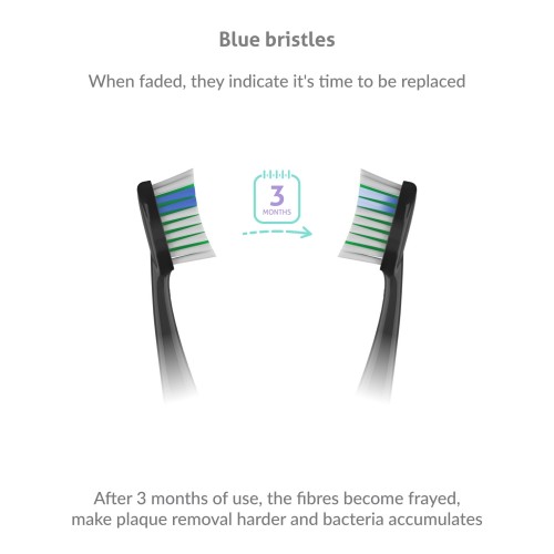 A fejek legfeljebb 3 hónapos használatra alkalmasak, ezt követően a sörtéik meggyengülnek és elhajolnak, veszítenek hatékonyságukból és baktériumok halmozódnak fel közöttük. Szerencsére a fejek kék sörtékkel vannak ellátva, amelyek 3 hónap után kifakulnak, így Ön tudja, hogy itt fejcsere ideje.