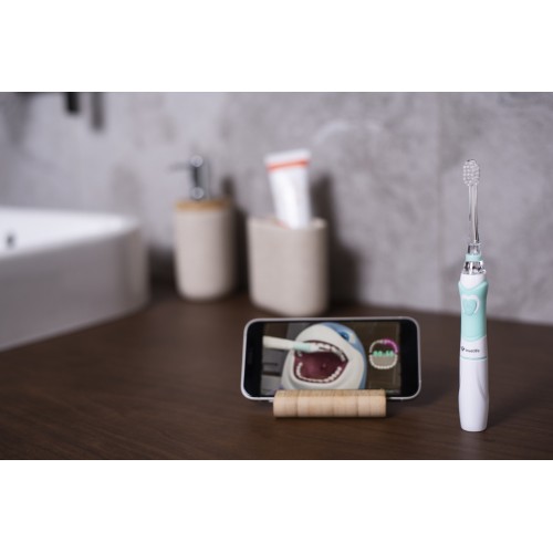 A fogmosás a TrueLife SonicBrush Baby G-vel hatékony, ugyanakkor nagyon könnyű is. Miközben a kisgyerek a szülő vagy az oktató animáció segítségével megtanulja a helyes technikát, a fogkefe kíméletesen és hatékonyan eltávolít minden lepedéket és ételmaradványt. Nem kell túl nagy nyomást gyakorolni a fogkefére, elegendő a sörtéket előre-hátra mozgatva mindig óvatosan a fog irányába helyezni és lassan továbbvinni. A nagyobb hatékonyság érdekében érdemes a fogmosást 4 szakaszra osztani, 30 másodperces ciklus után a kefe szünetet tart, és figyelmezteti Önt, hogy vigye a következő szakaszra. 2 perc elteltével a kefe kikapcsolja magát.