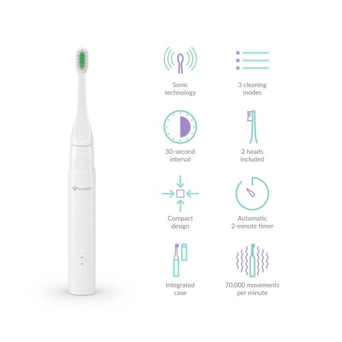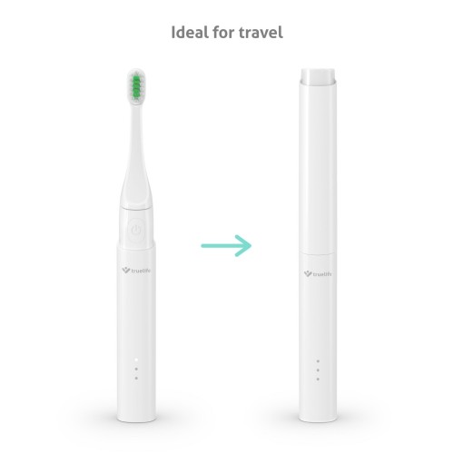 Kis méretének köszönhetően a SonicBrush T100 bármilyen táskában elfér. Az integrált toknak köszönhetően a fogkefét akkor is tisztán tarthatja, ha egy helyről más helyezi át a székhelyét. A fogkefe a mellékelt mágneses kábellel tölthető fel, és egy feltöltéssel akár 21 napig is bírja. Így rövidebb utakra még a kábelt sem kell magával vinnie.