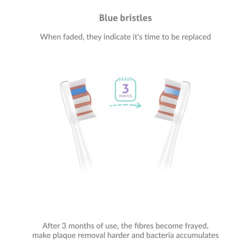 A fejek legfeljebb 3 hónapos használatra alkalmasak, ezt követően a sörtéik meggyengülnek és elhajolnak, veszítenek hatékonyságukból és baktériumok halmozódnak fel közöttük. Szerencsére a fejek kék sörtékkel vannak ellátva, amelyek 3 hónap után kifakulnak, így Ön tudja, hogy itt fejcsere ideje.