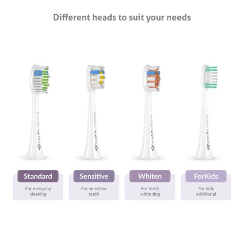 A SonicBrush UV fogkefével és számos tartozékával mind az otthonában, mind utazáskor komfortosan biztosíthatja az szükséges foghigiéniát. A csomag 3 db különböző típusú cserefejet tartalmaz - Standard a normál fogmosáshoz, Sensitive az érzékenyebb fogakhoz és Whiten a fehérítő hatáshoz. A fejek legfeljebb 3 hónapos használatra alkalmasak, ezt követően a sörtéik meggyengülnek és elhajolnak, veszítenek hatékonyságukból és baktériumok halmozódnak fel közöttük. Szerencsére a fejek kék sörtékkel vannak ellátva, amelyek 3 hónap után kifakulnak, így Ön tudja, hogy itt fejcsere ideje.