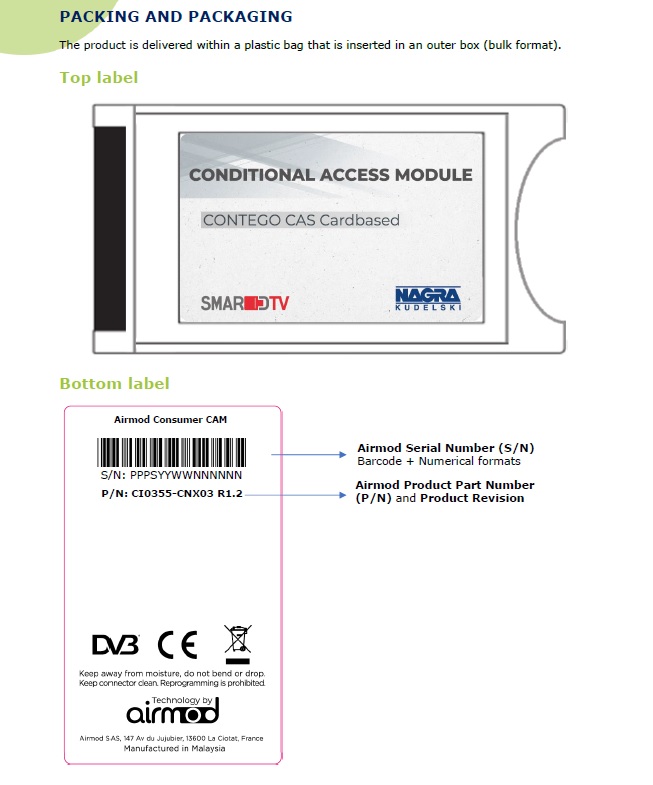 Bármelyik szabványos Conax kódoláshoz használható (NON PAIRED nem párosított kártya esetén)